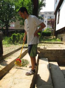 Почистване двора на Икономовата къща