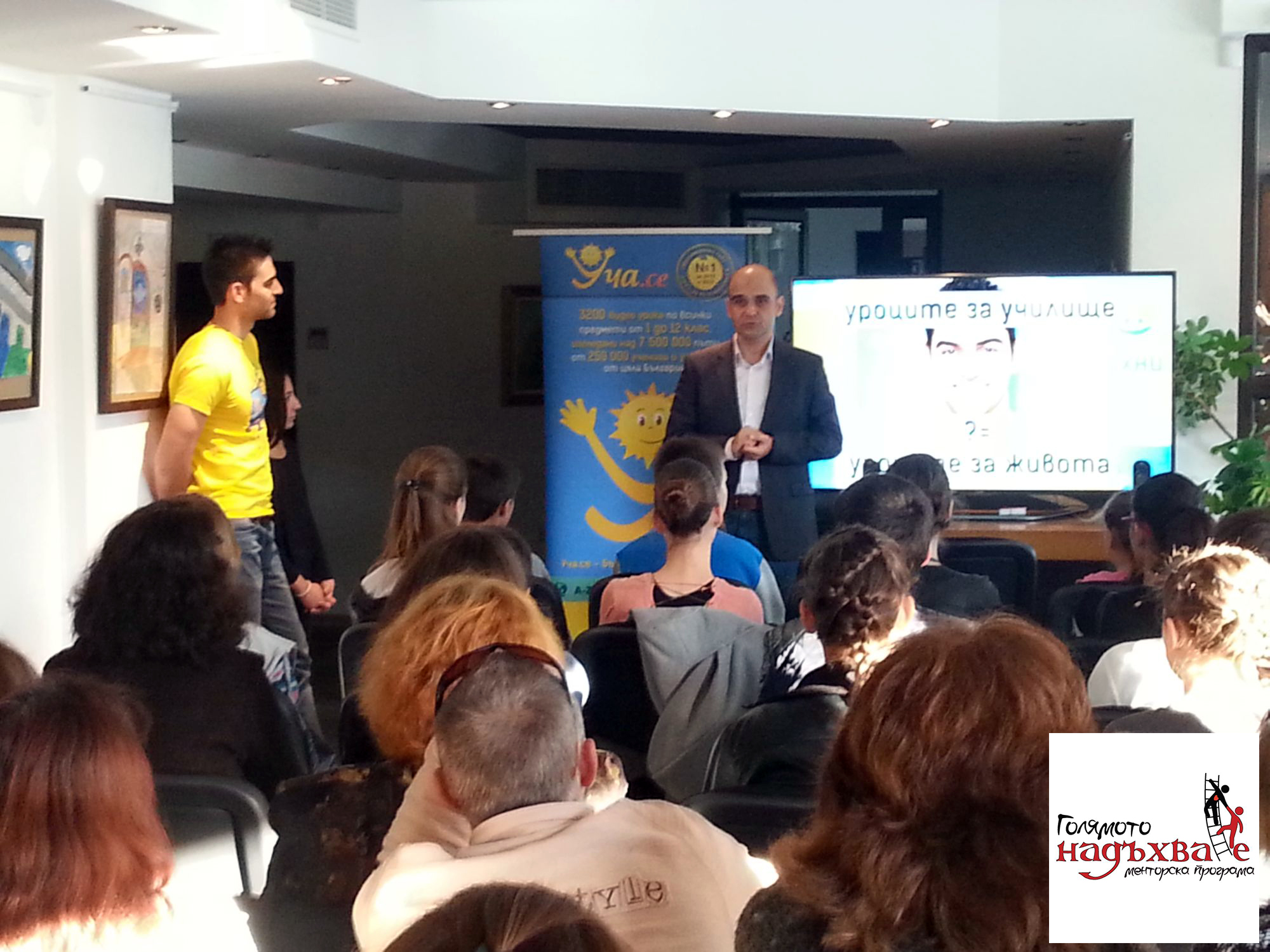 Второ, залата се пукаше по шевовете от хора. Имаше колкото седящи, толкова и правостоящи – над 60 човека. Имаше ученици и студенти на различна възраст (включително дошли от Варна, Търговище, Велико Търново и Габрово), имаше учители, имаше родители. За нас беше чест, че на събитието присъстваха и директорите на двете дряновски училища – г-жа Катерина Стефанова (СОУ “М. Райкович”) и г-жа Снежина Симеонова (ПГИ “Рачо Стоянов) – две страхотни жени с огромно желание да правят образованието по-достъпно, учениците по-мотивирани да гонят успеха и отворени към алтернативни форми на образование, като нашата. С нас бе и основателят на нашето сдружение г-жа Мария Димитрова, която е нашият най-голям ментор.