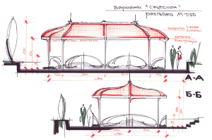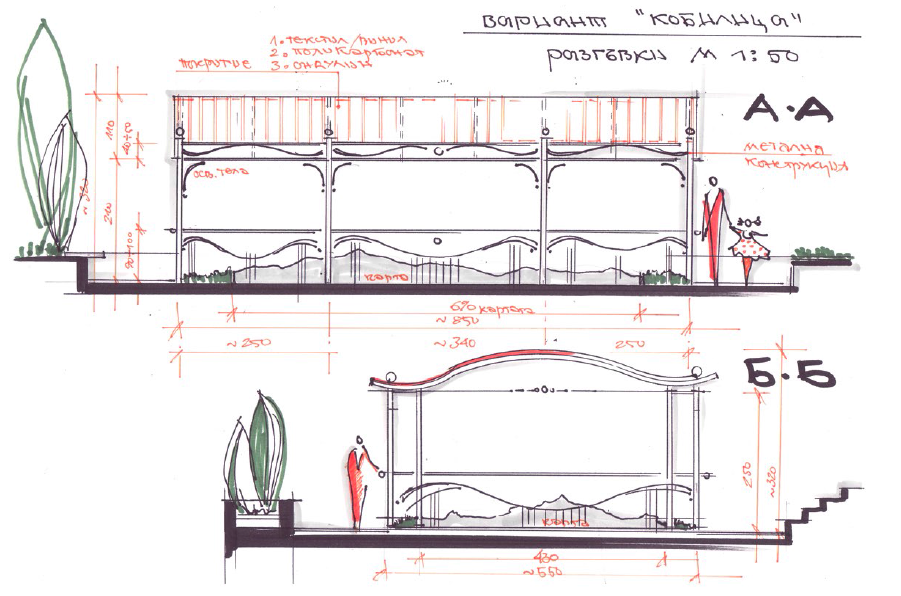 Покривната конструкция и оградата, които предлагаме да бъдат изградени са по проект на столичното архитектурно студио MIO Design, който беше изработен безплатно и дарен на организацията ни. Освен представения схематично проект, от студиото бяха разработили и още две версии: Сецеион и Класически:
